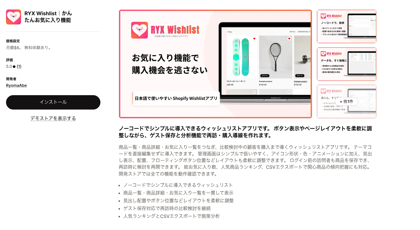 日本語対応を重視するなら → RYX Wishlist。管理画面が完全に日本語なので、マーチャントが自分で設定変更できます。サポートも日本語で対応しています。